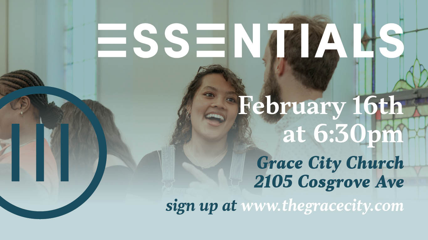 Essentials is our membership class! This 7 week course is broken into both large group teaching and consistent small group discussion. You'll hear from some of our staff and elders on the fundamental doctrines of Grace City as well learn about the different ministry teams you can be a part of. Because we operate as a family, we value membership and are excited for the potential opportunity to include you in it.